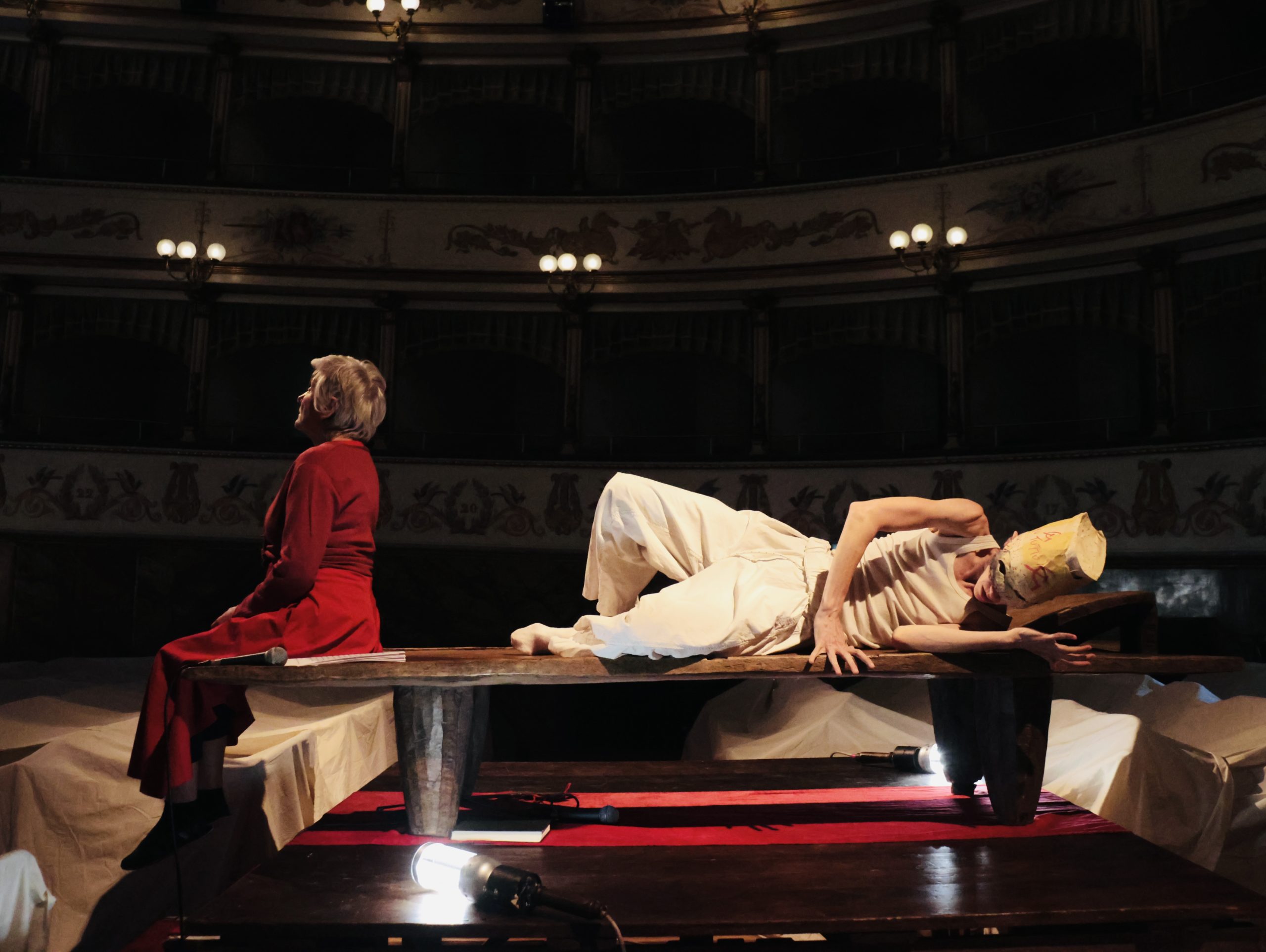 Bestemmia avrà un breve prologo all’aperto: dal balcone del Teatro Bonci, Mariangela Gualtieri pronuncerà le parole che in questo momento vorremmo dire alla nostra città e al mondo.